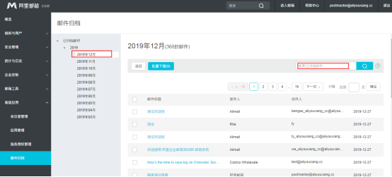 下載郵件操作日志,最長3個月,與日志保存期限一致 |