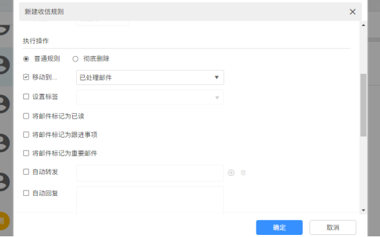 2.執行條件可以移動郵件,給郵件添加標簽,設置自動轉發等等。
