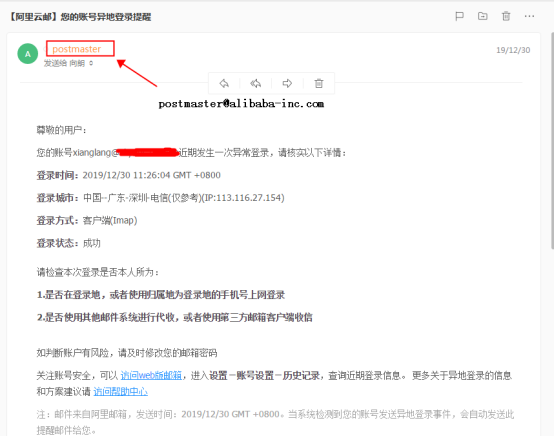 1.【阿里云郵】您的賬號異地登錄提醒_
