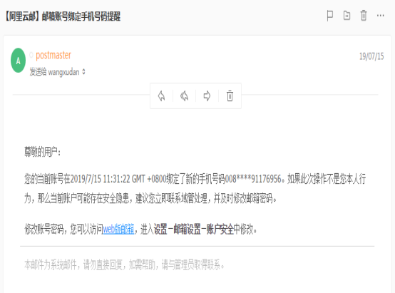 3.【阿里云郵】郵箱賬號綁定手機號碼提醒_