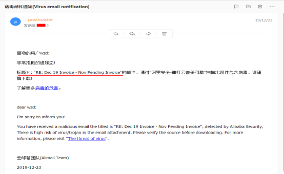 1. 病毒郵件通知(Virus email notification)