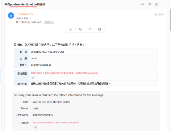 2. 來自postmaster@net.cn的退信