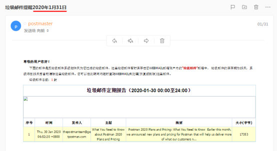 注意:開啟該郵件提醒功能后,垃圾箱的郵件不再永久保存,15天后自動刪除。